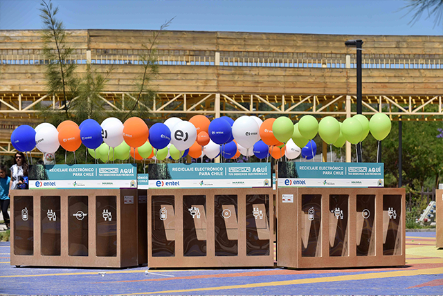Como parte de la campaña “Reciclaje electrónico para Chile”, Entel y la Fundación Recyclápolis distribuyeron depósitos -de 360 litros cada uno- en diversos puntos de la ciudad.