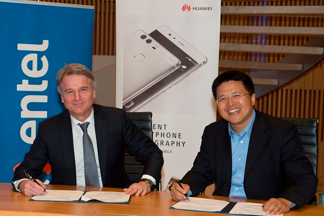 La alianza fue suscrita por el gerente general de Entel, Antonio Büchi, y el Vicepresidente de Huawei Consumer Business Group, Jimm Xu.