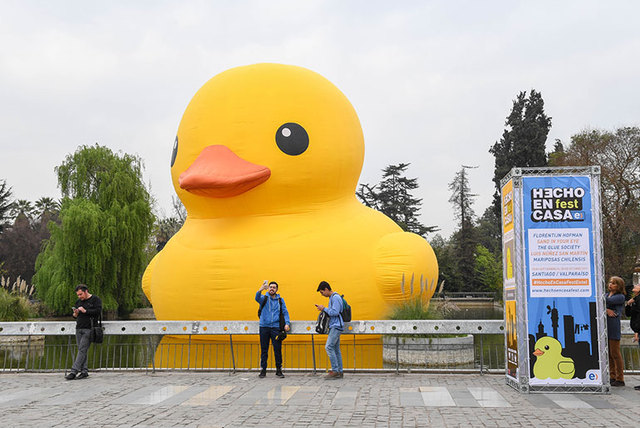 A partir de hoy, un pato de hule gigante invitará a las familias a visitar el Parque Quinta Normal. Esto, debido a que hoy comenzó la quinta edición del festival Hecho en Casa Entel.