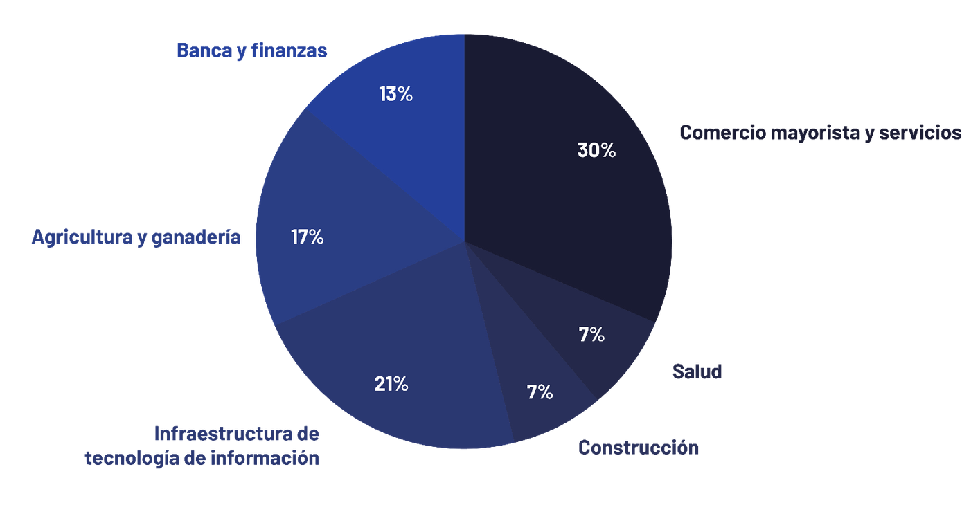 Según el reporte, los sectores más afectados por el ransomware fueron el comercio mayorista y servicios (30% del total de incidentes), salud (7%) y construcción (7%). A nivel nacional, los más afectados fueron infraestructura de tecnología de información (21%), banca y finanzas (17%) y agricultura y ganadería (13%). Por su parte, las medianas y grandes empresas fueron el principal foco para los cibercriminales en 2024.