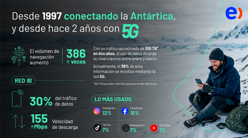 El beneficio de esta infraestructura se refleja en un uso de quienes residen en el continente blanco, la conectividad permite que el aislamiento geográfico no se traduzca en aislamiento social, siendo las plataformas de interacción las más demandadas. En primer lugar se encuentra Instagram (12%), le sigue Facebook (10%), TikTok (7%), Navegación web (7%) y YouTube (7%).