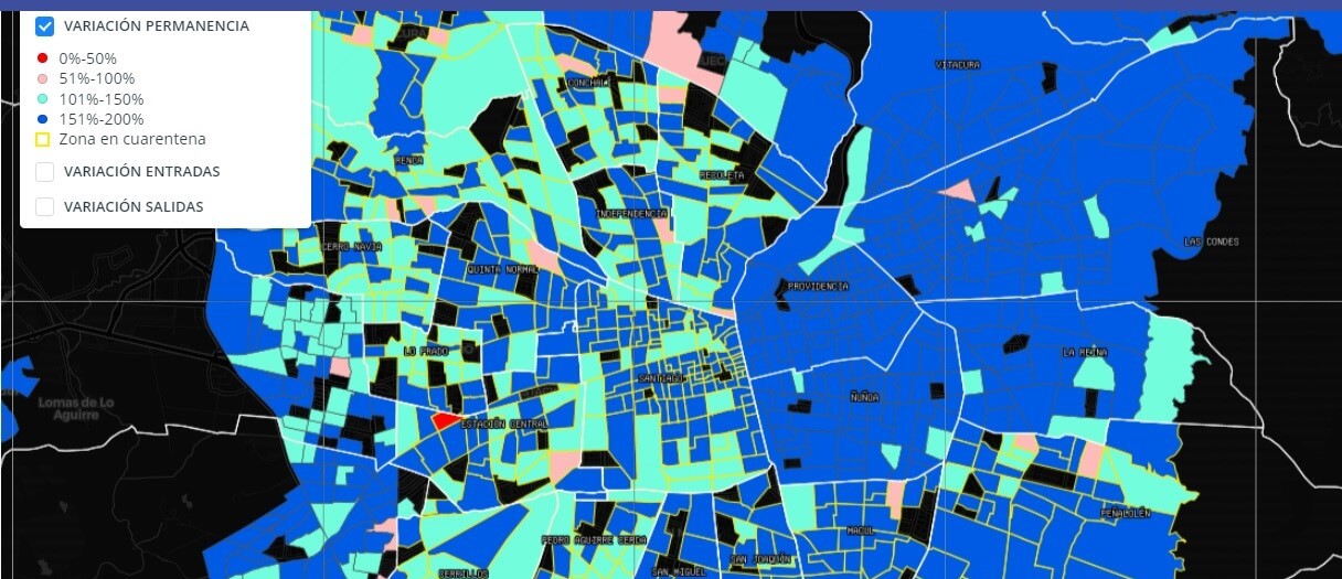El primer hito alcanzado como resultado de esta alianza, es la creación de una plataforma digital dinámica de acceso público que muestra, a través de un visor cartográfico, la variación porcentual periódica de la movilidad del área urbana de la Región Metropolitana.
