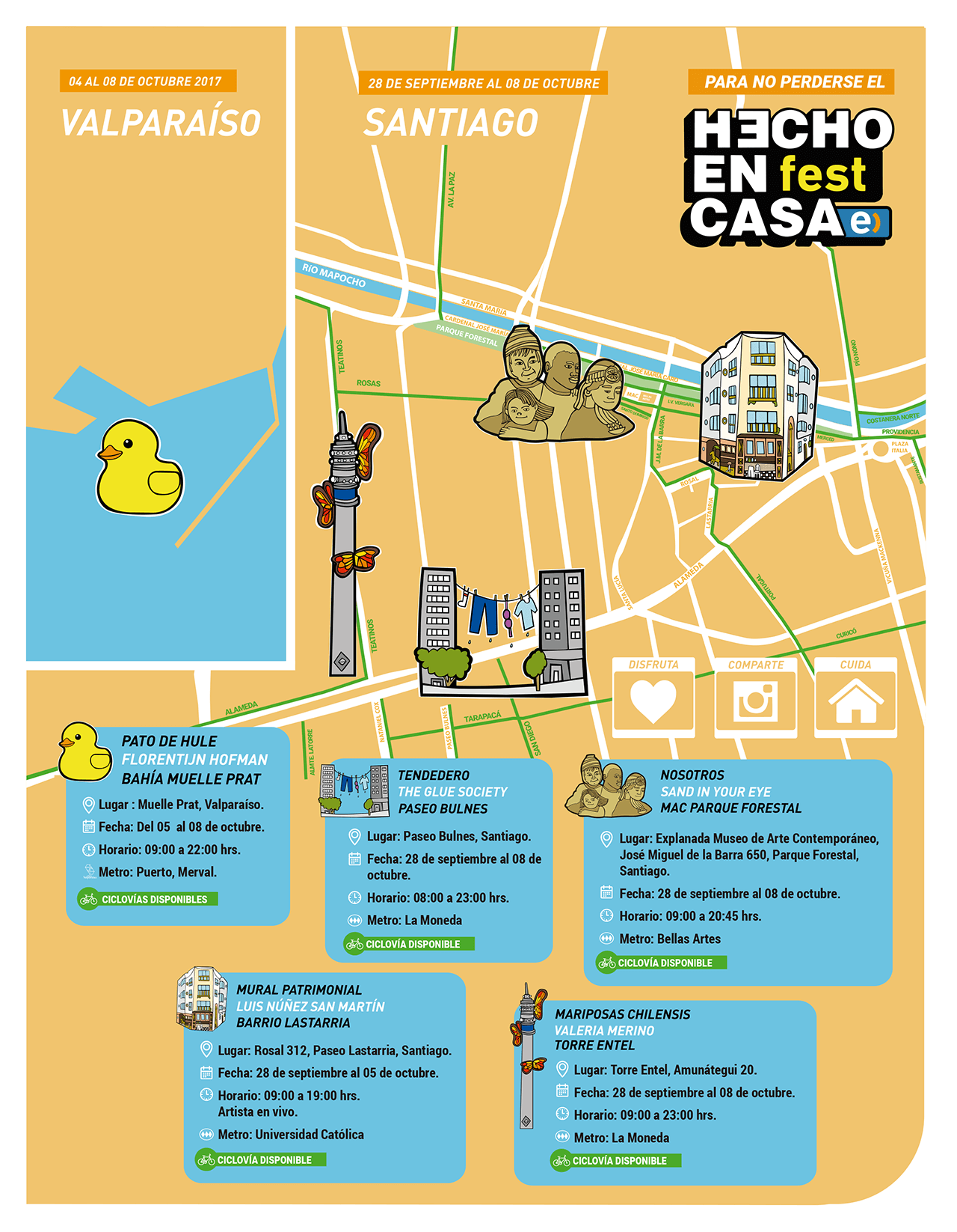 Payo Söchting, director creativo del festival, comentó que“estamos muy contentos por el éxito del festival y en especial por el cariño demostrado por la gente al Pato de Hule, esperamos que todos puedan disfrutar de su visita en Valparaíso. Es la primera vez que el festival se realiza en regiones, por lo que estamos muy orgullosos de poder traer esta importante obra de arte urbano al puerto”.