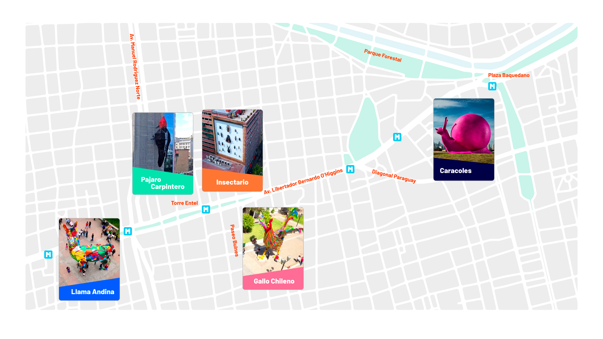 12 Caracoles, una Llama Andina, un Gallo Chileno, un mural hiperrealista, Insectario y desde la altura de la Torre Entel, el Pájaro Carpintero. La 6º version del Hecho en Casa Entel volvió a sorprender con sus intervenciones urbanas de gran escala.