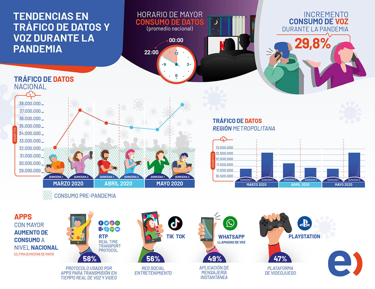 At the national level, voice traffic (calls) increased by 29.8% since the beginning of the health emergency in Chile.
