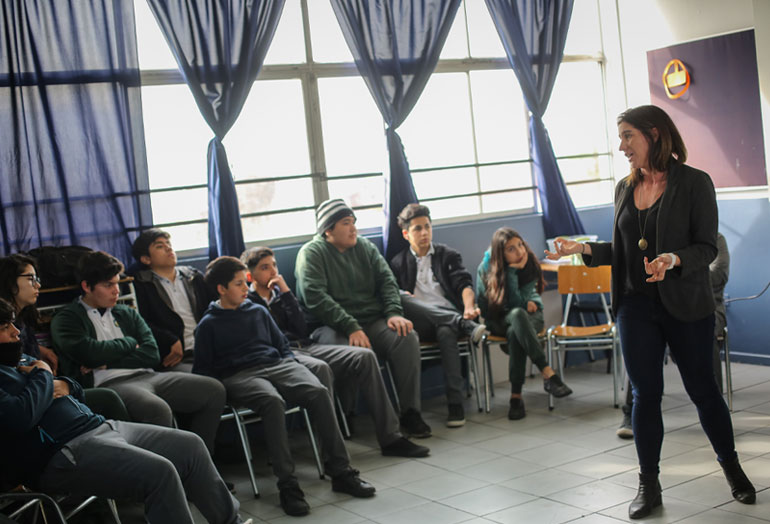 Una segunda arista de las tutorías consiste en una charla a cursos de 1ero a 4to medio, donde los ejecutivos de Entel visitan las escuelas y generan espacios de conversación en base a temáticas diseñadas de acuerdo al nivel que cursan los estudiantes, desarrollando una apertura cultural y social que beneficia tanto a los alumnos como a los tutores.