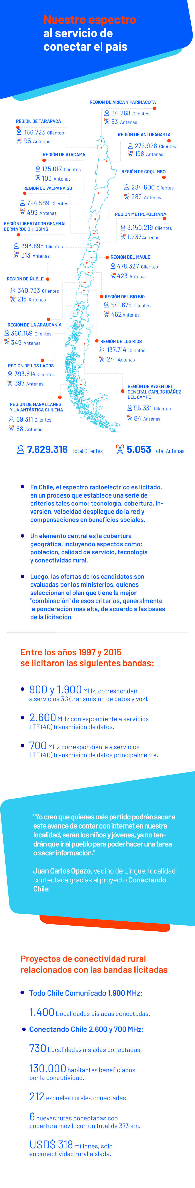 En particular, las implicancias que tendría la eventual limitación del espectro que podrían utilizar los operadores de telecomunicaciones para desplegar su infraestructura y ofrecer sus servicios, en la calidad del servicio que se les entrega a los clientes y al desarrollo del país.